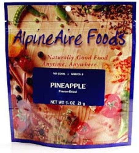 The AlpineAire foil pouch outdoor foods are designed to provide a quick and easy meal for the outdoor adventurer. They offer a long shelf life, a generous serving size and include an oxygen absorber to maintain freshness. This pouch contains freeze-dried, chunks of pineapple.